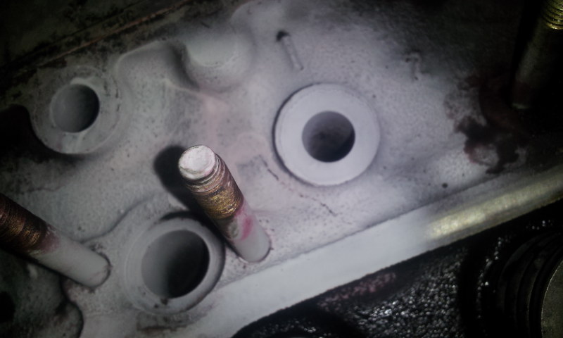 画像見てわかりますか!?エンジンのシリンダーヘッドが割れてしまっていました。割れの部分より冷却水漏れ発生。シリンダーヘッドが割れているとは、まさか思っていませんでした。